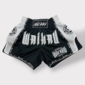 -Muay Thai Shorts – MicroFiber Black – Mesh White – MT-17