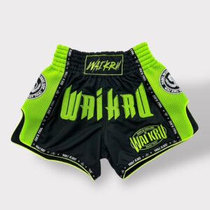 -Muay Thai Shorts – MicroFiber Black – Mesh Neòn Green – MT-23