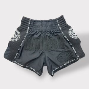 -Muay Thai Shorts – MicroFiber Black – Mesh Grey – MT-15